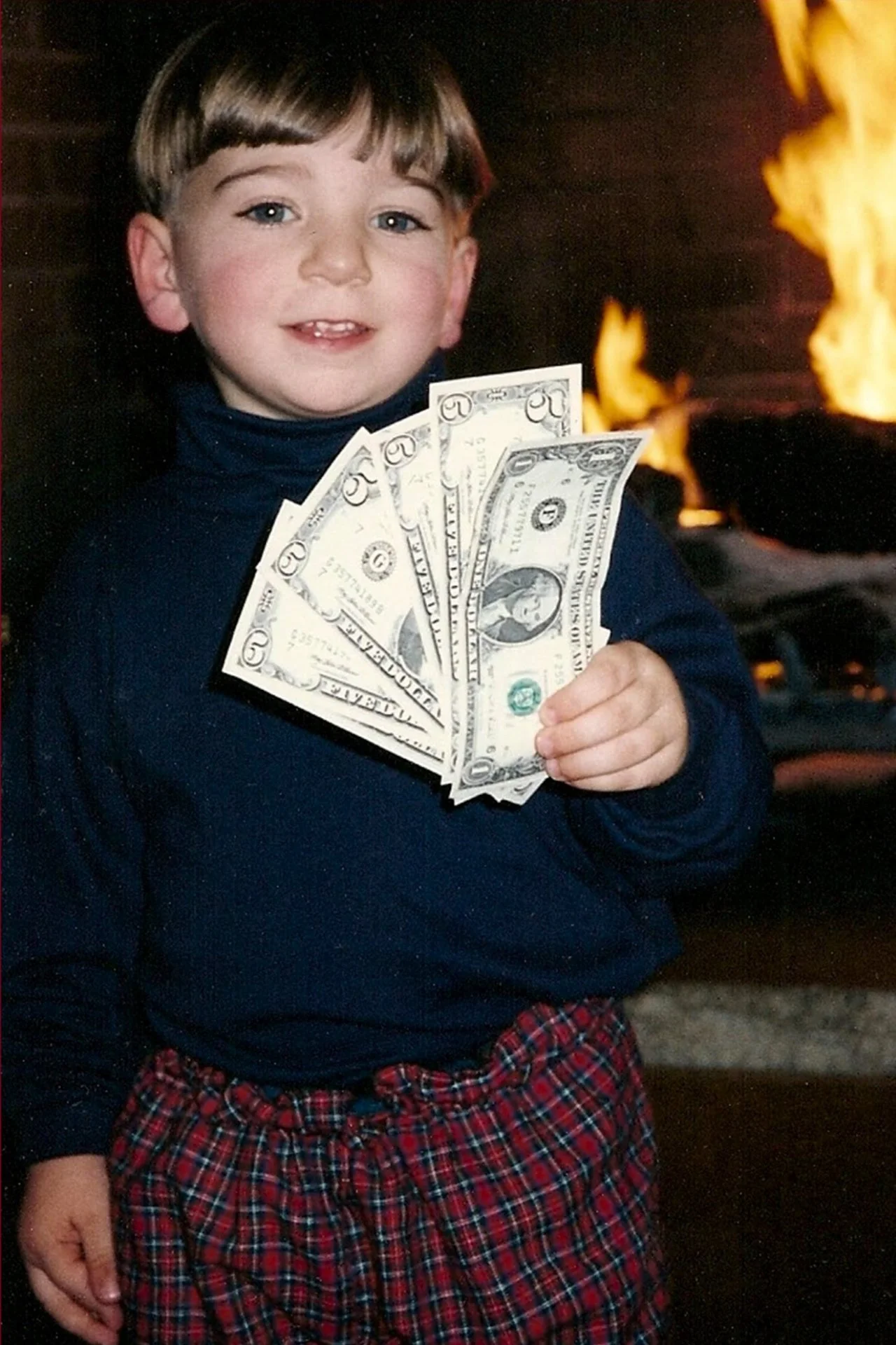Here is Cooper with his reward, $26 for memorizing and reciting 26 verses, at 2 1/2 years old!